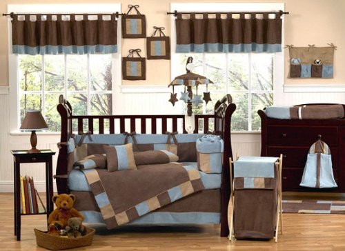 Related Modern Soho Blue and Brown Baby Boy Bedding 9pc Bedding Crib Set by Jojo Designs